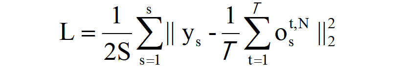为了介绍STBP训练框架,我们定义以下损失函数,其中给定时间窗T下所有样本的均方误差应最小化: