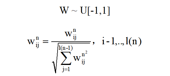 参数(例:权重、阈值等等)的初始化对于稳定整个网络的触发活动至关重要。我们应该同时确保突触前刺激的及时响应,但要避免过多的尖峰降低神经元的选择性。众所周知,预峰值和 权重的乘加运算以及阈值比较是前向传递中的两个关键计算步骤。这表明权重和阈值之间的相对大小决定了参数初始化的有效性。在本文中,为简化起见,我们将阈值固定为每个神经元中的常数,并且仅调整权重以控制活动平衡。首先,我们通过从标准均匀分布式中采样来初始化所有权重参数: